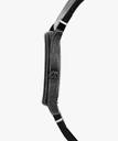 Stainless steel case with a stainless steel bracelet. Fixed stainless steel bezel. Black dial with luminous silver-tone alpha-style shape hands and Arabic numeral hour markers. Minute markers around the outer rim. Dial Type: Analog. Luminescent hands and markers. Date display at the 4 o’clock position. Chronograph – three sub-dials displaying: 60 second, 30 minute and 1/10th of a second. ETA Caliber G10.212 quartz movement. Scratch resistant sapphire crystal. Pull / push crown. Solid case back. Round case shape. Case size: 45 mm. Case thickness: 11.02 mm. Band width: 22 mm. Fold over clasp with a safety release. Water resistant at 100 meters / 330 feet. Functions: chronograph, rattrapante, date, hour, minute, small second. Sport watch style. Watch label: Swiss Made.